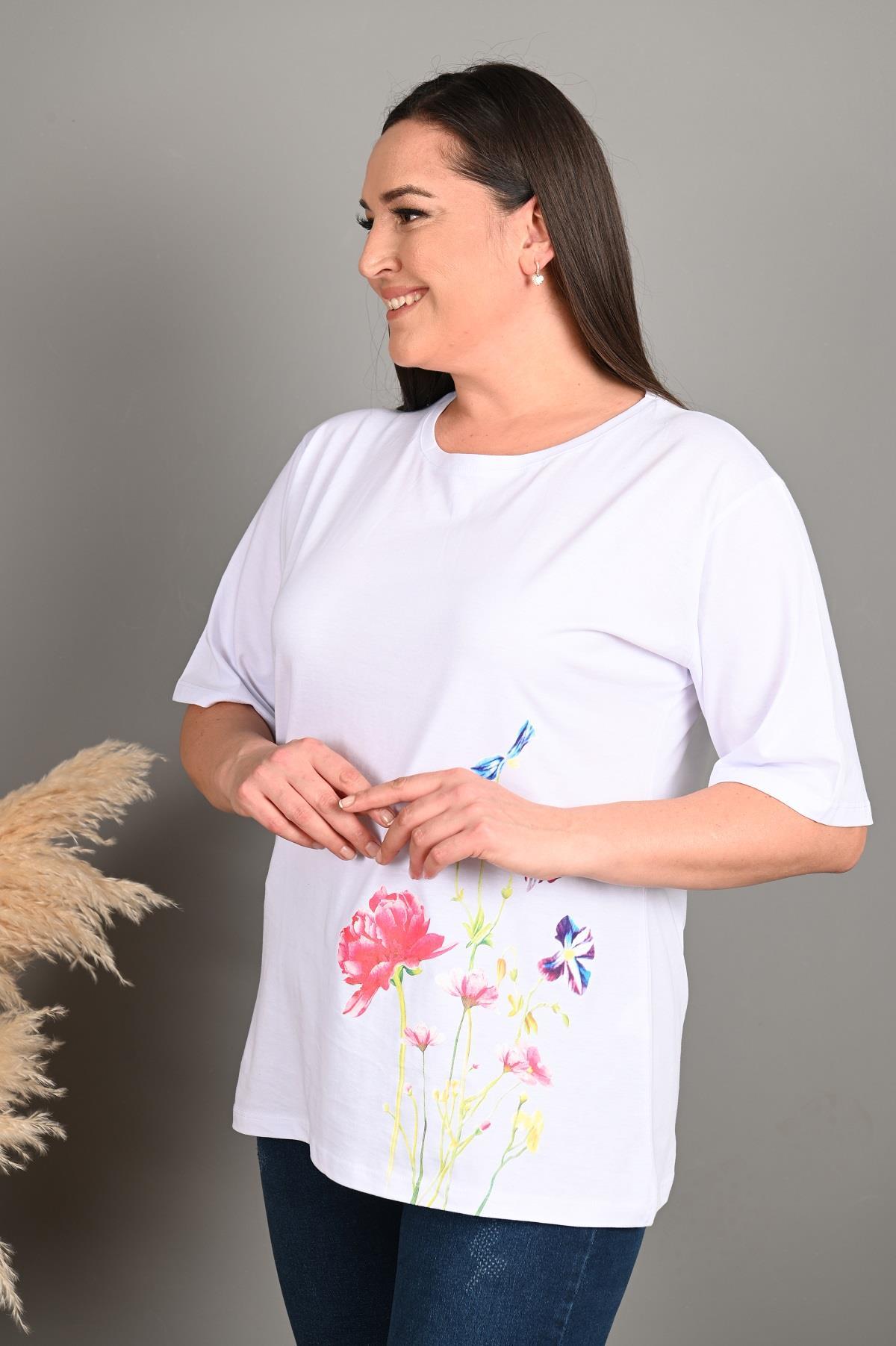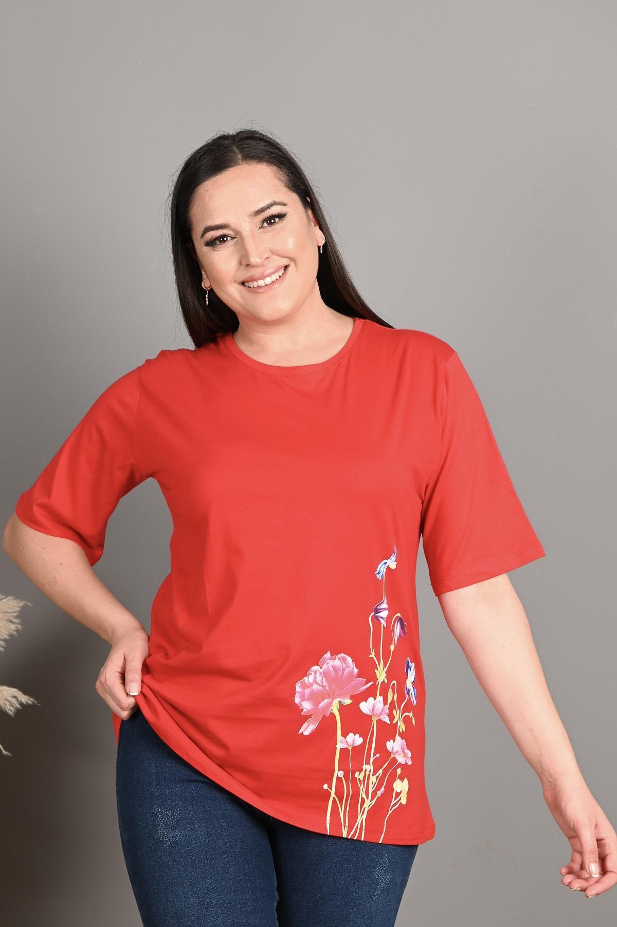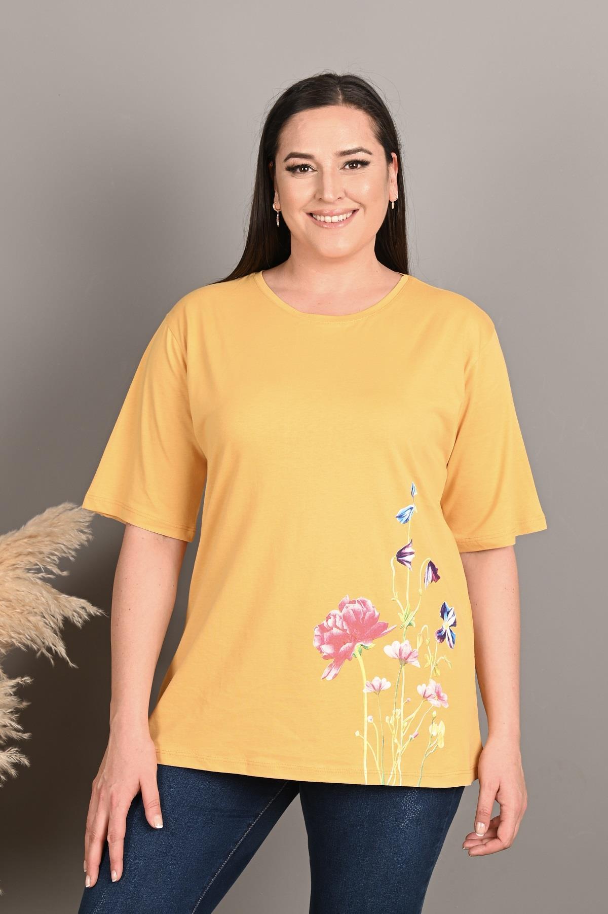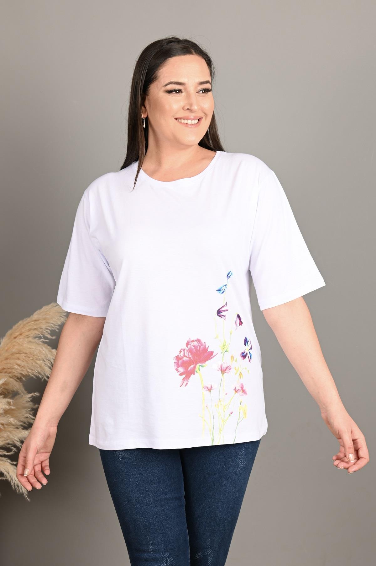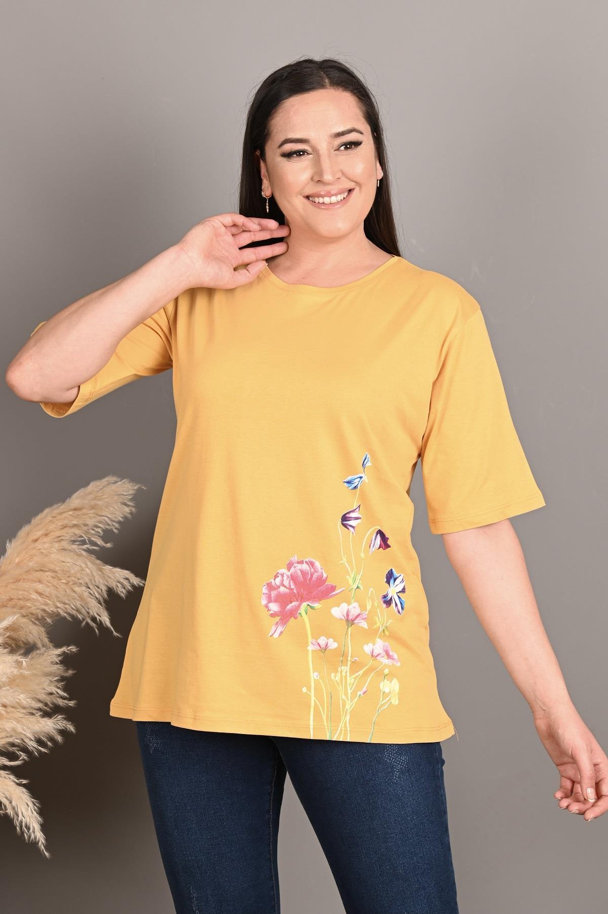 Esnek yapısıyla rahat hareket etmenizi sağlayan yaz aylarında terletme yapmayan bir T-shirt sunuyoruz. Günlük yaşamda evde, dışarıda, sporda rahatlıkla kombin yapabileceğiniz bir ürün. Çiçek desenleri tam yaz aylarına uygun olarak tasarlandı. Kumaş yapısı gereği, alerjik reaksiyon göstermez. Materyal: 2 İplik Penye Kumaş İplik:%70 COTTON %25 POLYESTER %5 LYCRA Mankenin Üzerindeki Beden : 3XL Bedendir. Mankenin Ölçüleri: Boy:1.74, Kilo:90, Göğüs:105, Bel:90
