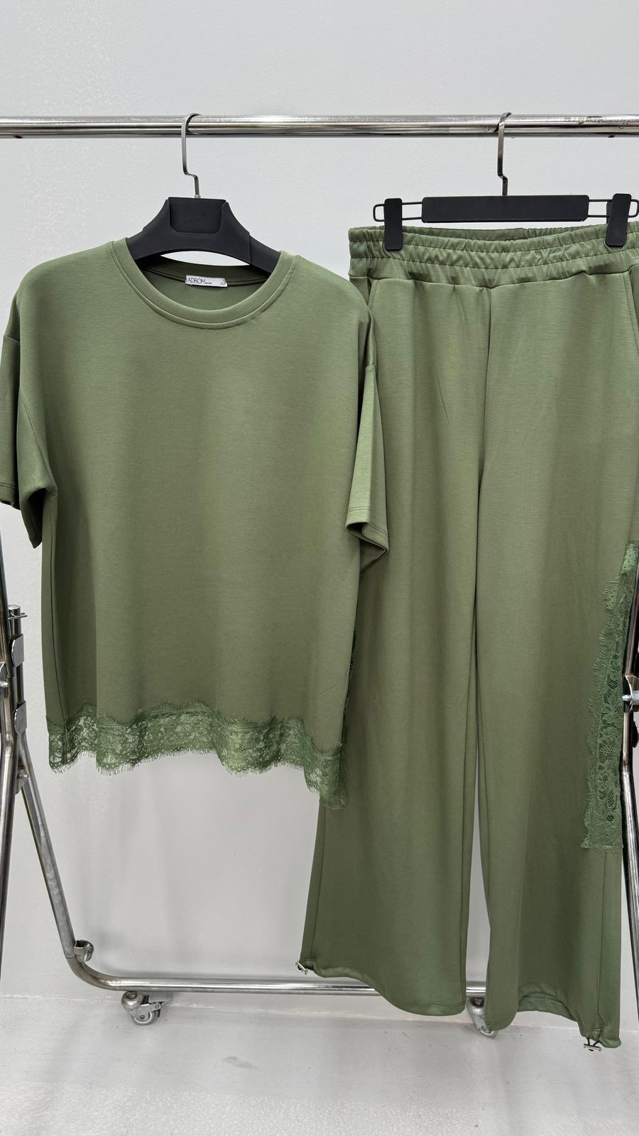 Kadın Büyük Beden Kısa Kollu Dantel Güpür Detaylı Eşofman Takımı 8255-26
