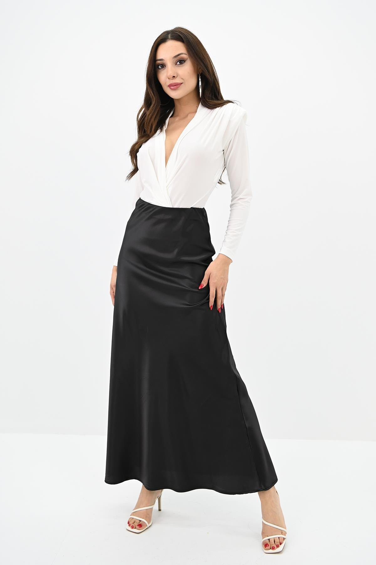 Zarafeti ve Şıklığı Bir Araya Getiren Dökümlü Saten Etek Zamansız şıklığı ve zarif duruşuyla dikkat çeken saten etek, gardırobunuzun vazgeçilmez parçalarından biri olmaya aday. Yüksek bel detayı sayesinde hem beli zarifçe vurgulayan hem de bacakları daha uzun gösteren bu etek, her türlü kombinasyonla mükemmel uyum sağlar. Ürün Özellikleri: Dökümlü ve Akıcı Kesim: Hareket özgürlüğü sunan dökümlü kesimi sayesinde gün boyu rahatlık sağlar.Yüksek Bel Detayı: Vücut hatlarını zarifçe ortaya koyan yüksek bel detayı, feminen bir görünüm yaratır.Saten Kumaş: Lüks ve şıklığı bir arada sunan saten kumaş, eteğe özel bir dokunuş katar.Uzun Model: Her boyda kadına yakışacak uzunluğu ile farklı tarzlara uyum sağlar.Beden Seçenekleri: 36-42 beden aralığıyla geniş bir kitleye hitap eder.Çok Yönlü Kullanım: Hem günlük hayatta hem de özel davetlerde rahatlıkla tercih edilebilir.Neden Bu Eteği Seçmelisiniz? Her Mevsim Kullanılabilir: İncecik yapısıyla yaz aylarında serin, kalın kumaşlarla kombinlendiğinde ise kış aylarında sıcak tutar.Kolay Kombinlenebilir: Tişörtlerle spor, bluzlarla şık, kazaklarla ise hem rahat hem de zarif kombinler oluşturabilirsiniz.Özel Günler İçin İdeal: Davetlerde topuklu ayakkabı ve şık bir üst ile kullanarak göz kamaştırabilirsiniz.Vücut Tipini Güzel Gösterir: Bel kısmını vurgulayarak daha ince bir görünüm yaratır.Manken Üzerindeki Beden ve Ölçüler Manken üzerindeki beden 36'dır. Modelin ölçüleri ise şu şekildedir: Boy: 1.75 cm Kilo: 55 kg Göğüs: 89 cm Bel: 64 cm Basen: 93 cm