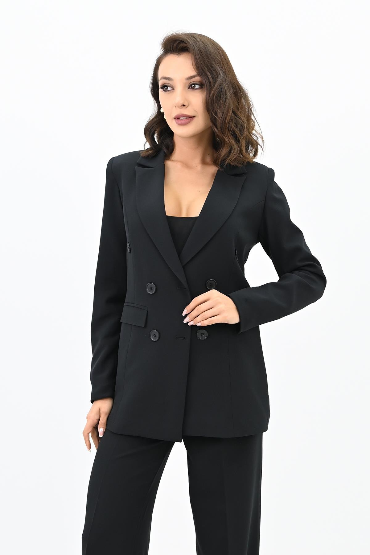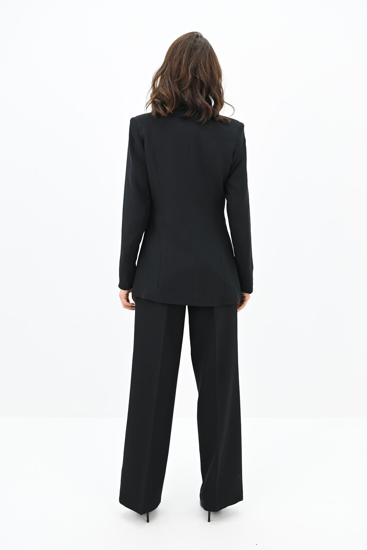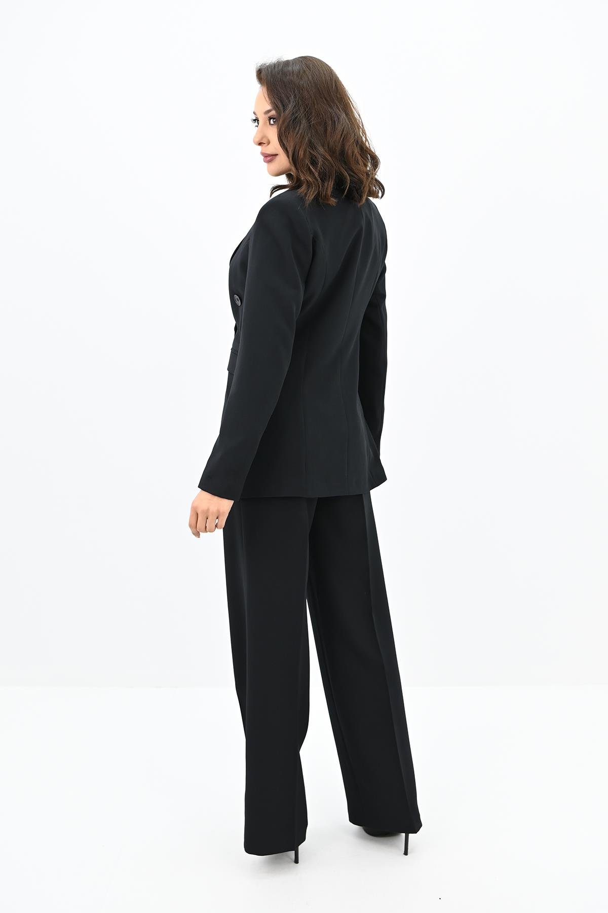 Şık tasarımıyla dolabınızdan ayırmyacağınız harika palazzo pantolon ceket takımı sizlere sunuyoruz. Davetler de, günlük kullanım da ve düğünler de bile tercih edeceğiniz ürünümüzün ceketi düğme detaylı ve kapak cep modeli bulunmakta, palazzo pantolonumuz da ise cep detayımız ve pens detayımız mevcut. Ürünümüzün ceket boyu 68 cm'dir. Pantolonumuzun boy uzunluğu ise 109 cm'dir. Manken Bedeni: S bedendir. Manken Ölçüsü: Mankenin Ölçüleri: Kilo:54, Bel:66, Basen:95 Materyal: %100 POLYESTER